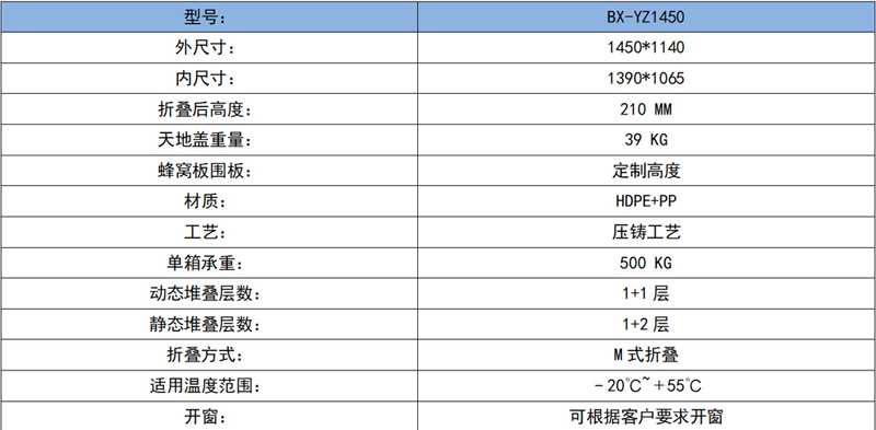 博轩吹塑蜂窝板围板箱规格型号表: