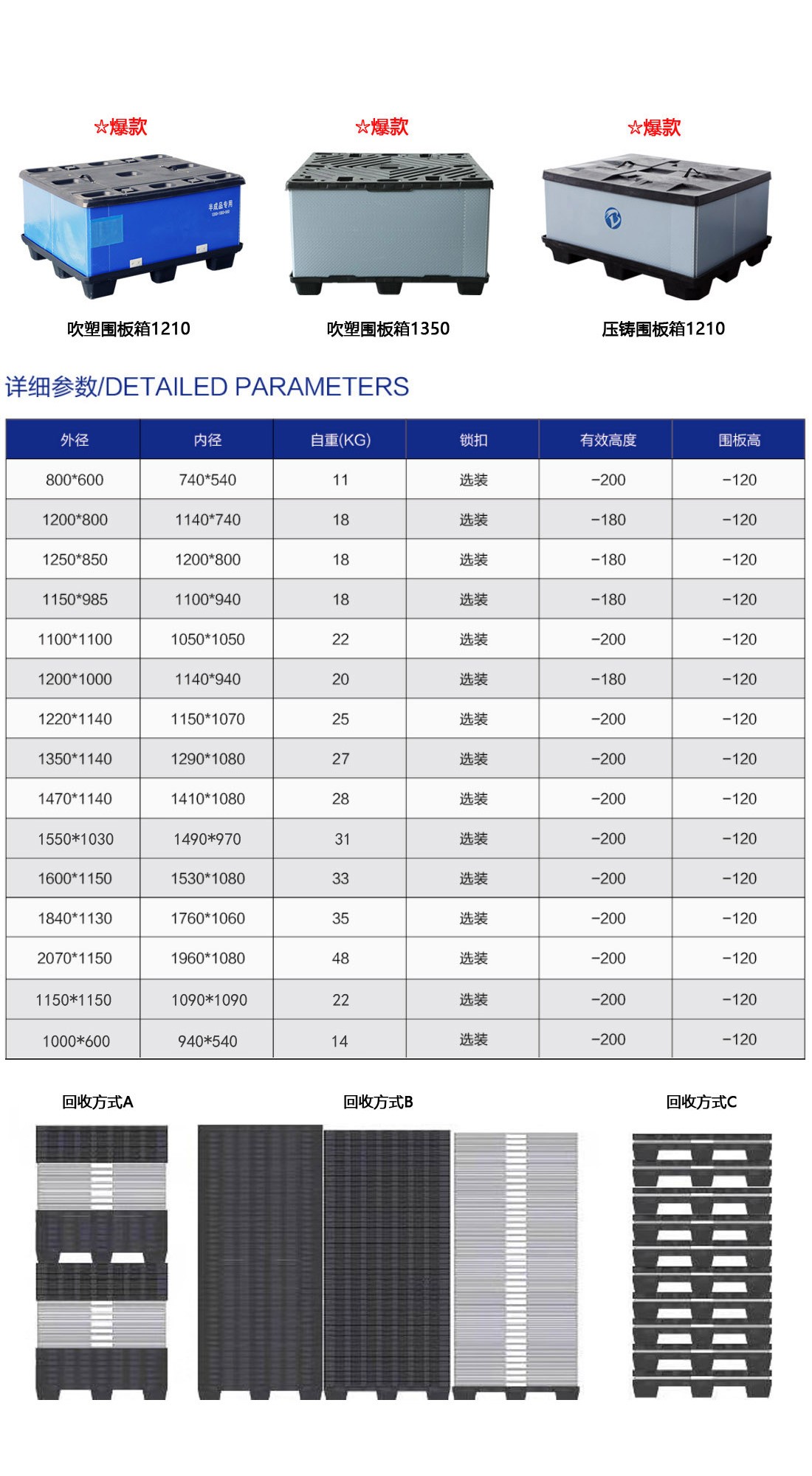 博轩2021最新最全吹塑蜂窝板围板箱规格尺寸表